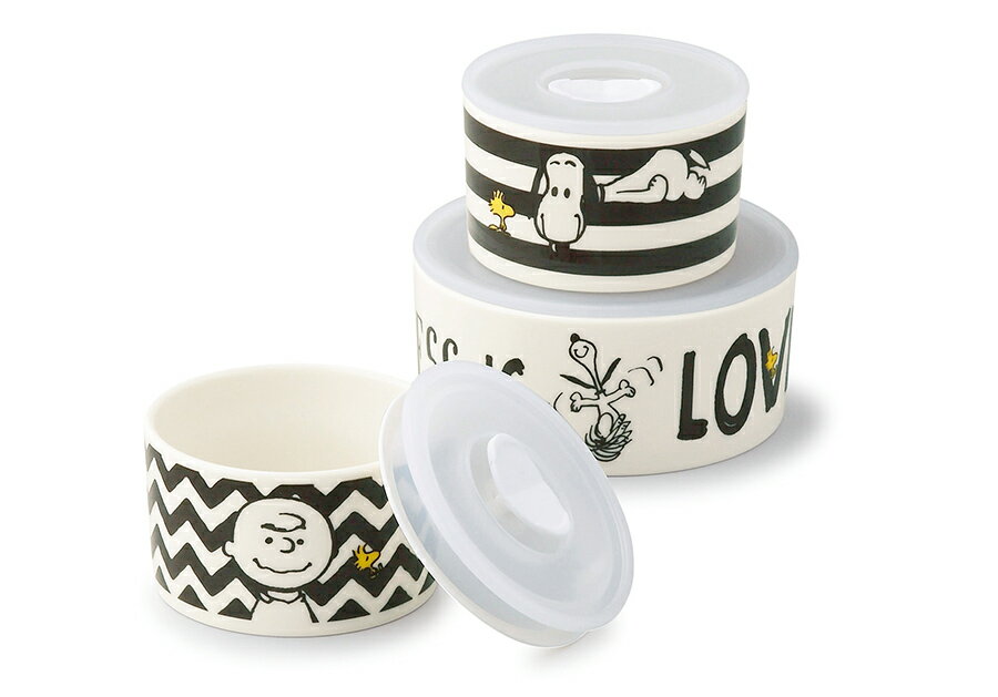 スヌーピー(SNOOPY) 【レンジ3点セット】 スヌーピーのモノトーン食器シリーズの保存容器3点セットです。